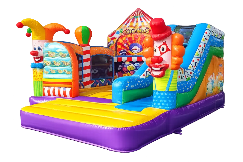 Mieten Sie die Zirkus-Hüpfburg mit Rutsche für unvergesslichen Spaß!